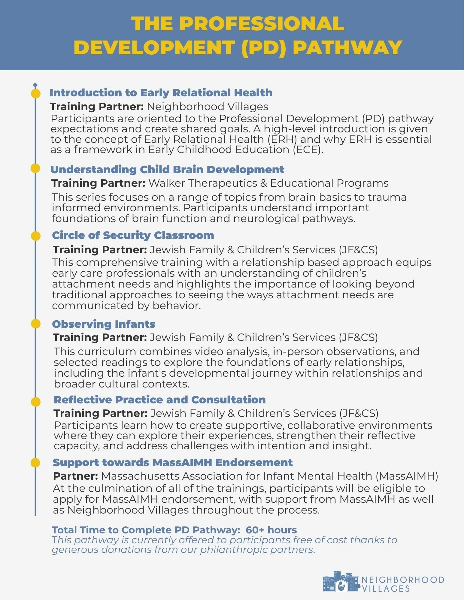 Early childhood programs are among the most important relational environments in a young child's world. Early educators and caregivers see families twice a day, almost every day, and spend a lot of time in relationship with the child. We partner with these programs to invest in the educators and caregivers at the center of this work because when the adults around children are supported, connected, and valued, children flourish.